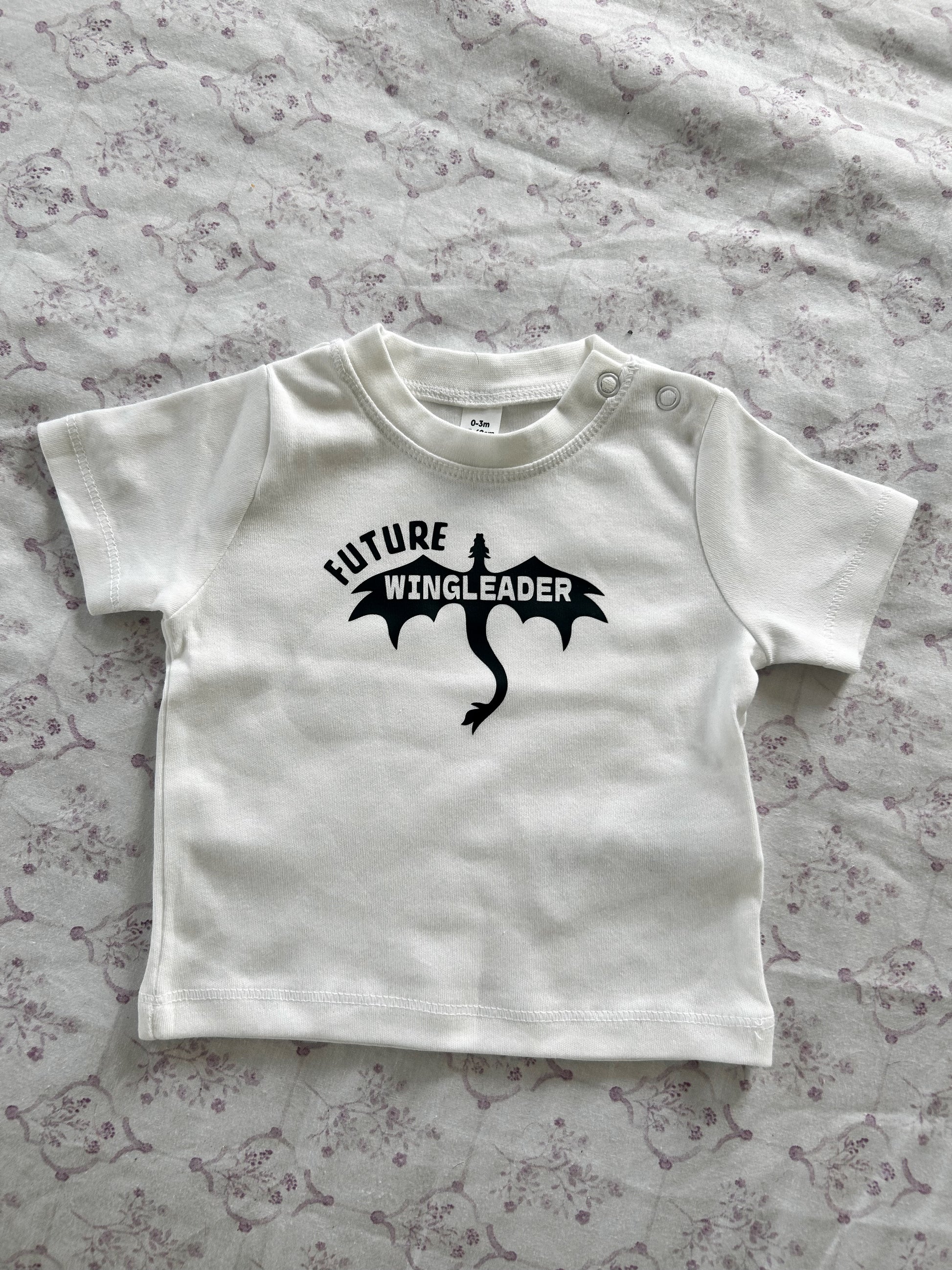 The shirt is a soft and comfortable durable crew neck cotton (100%) shirt with poppers on the shoulder for ease with undressing.