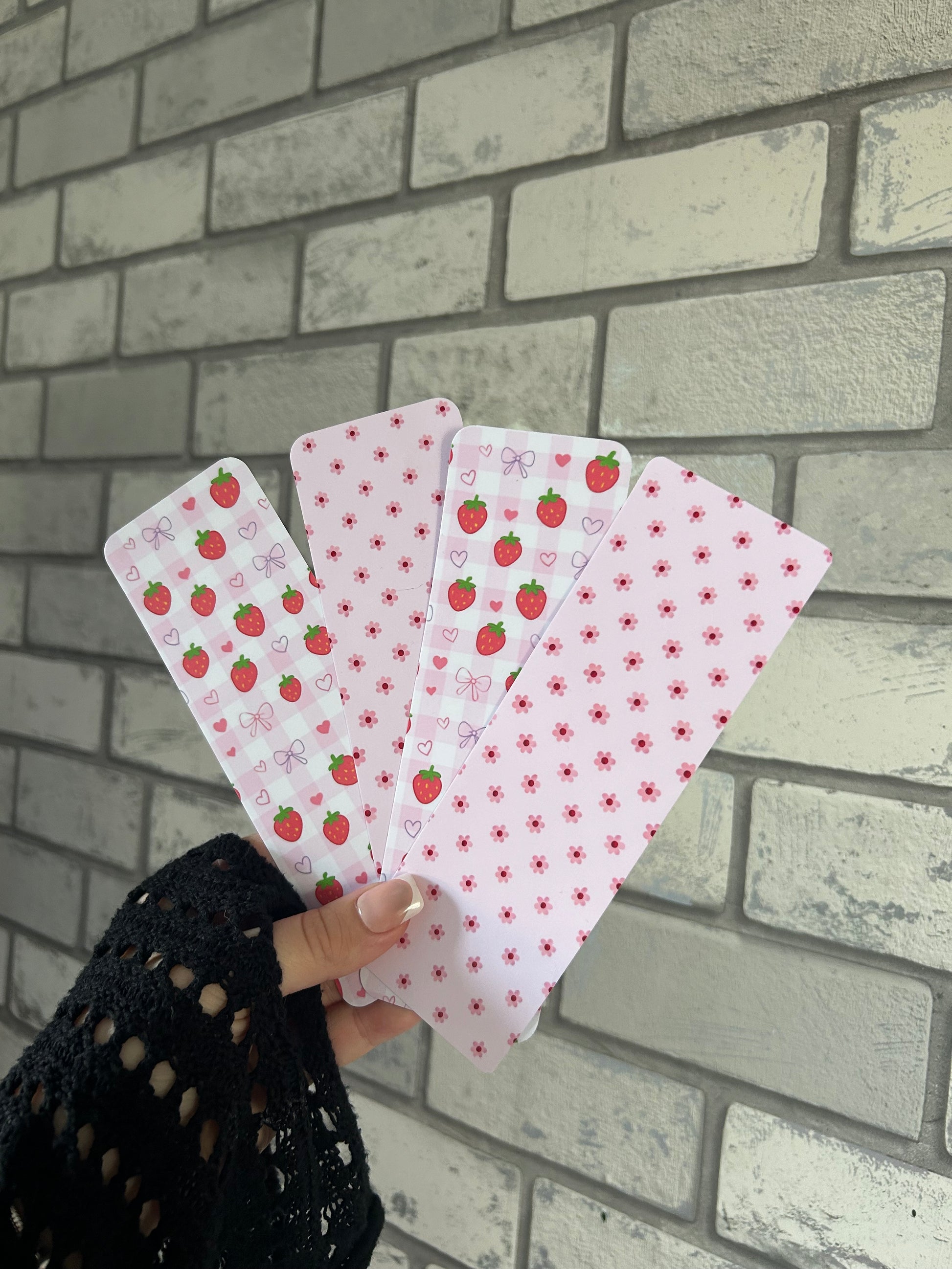This listing is for the one bookmark, picture two also shows our strawberry print bookmark for display.