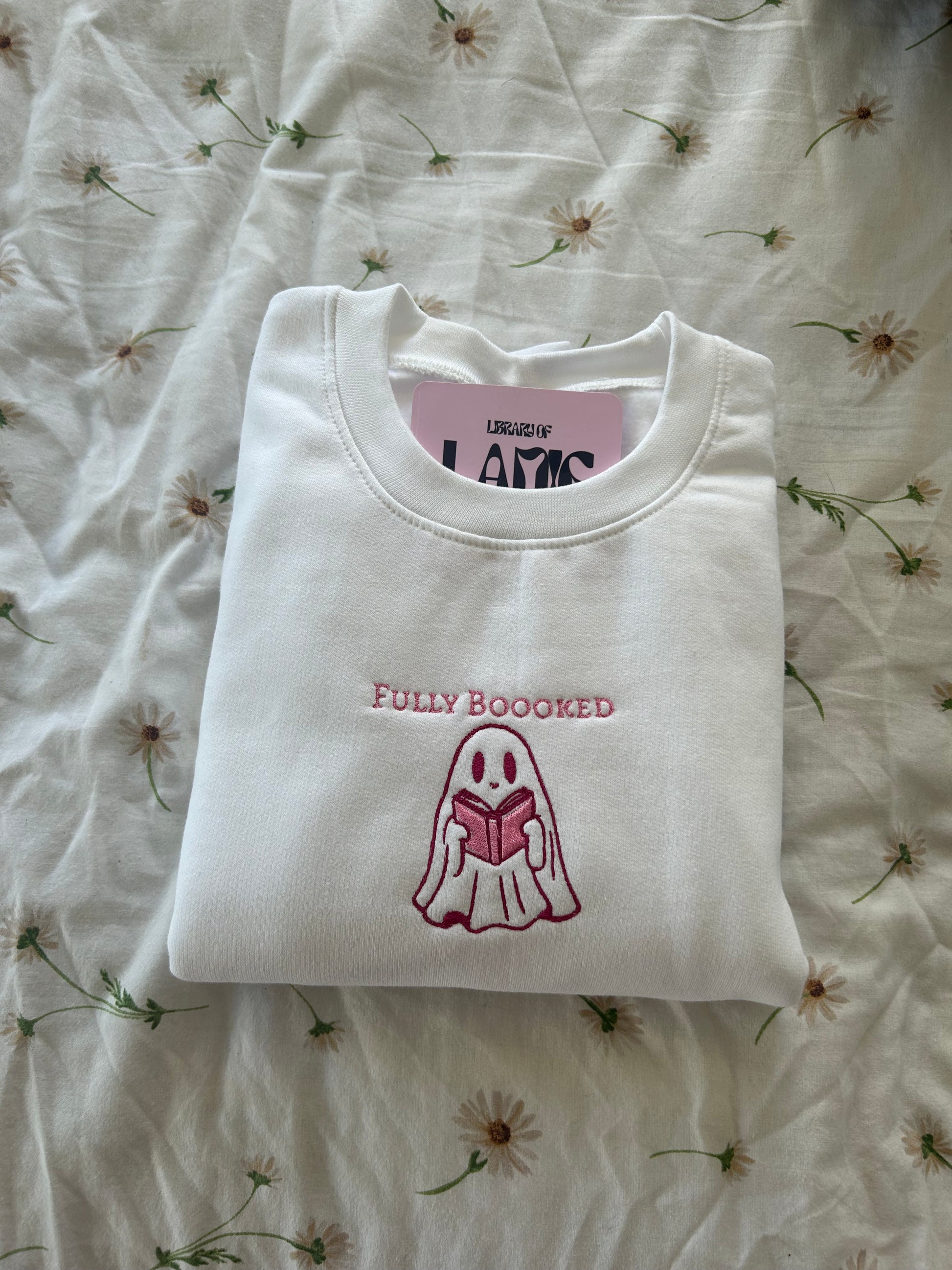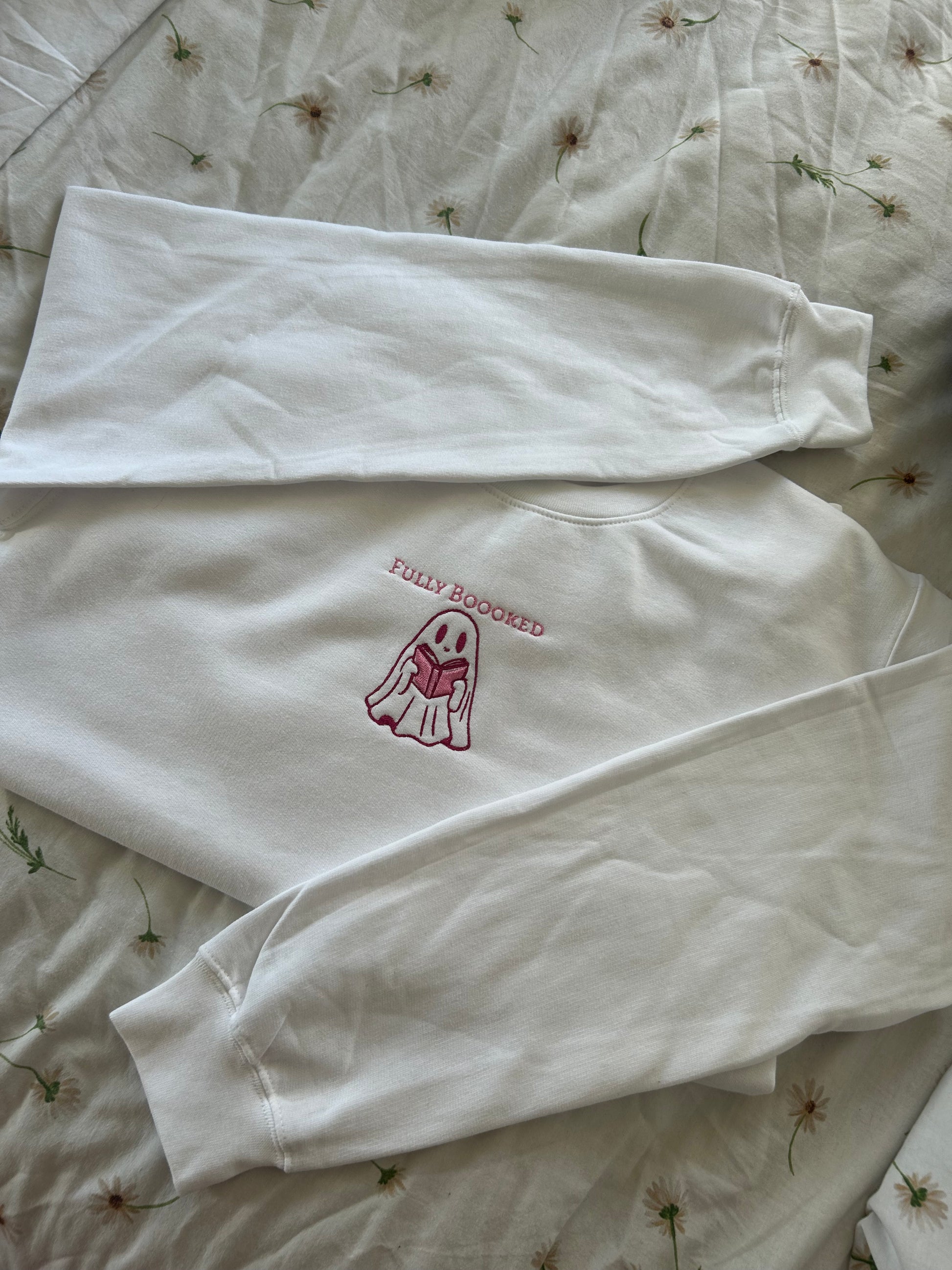 Fully Boooked ghost design embroidered on a high quality cotton sweatshirt.