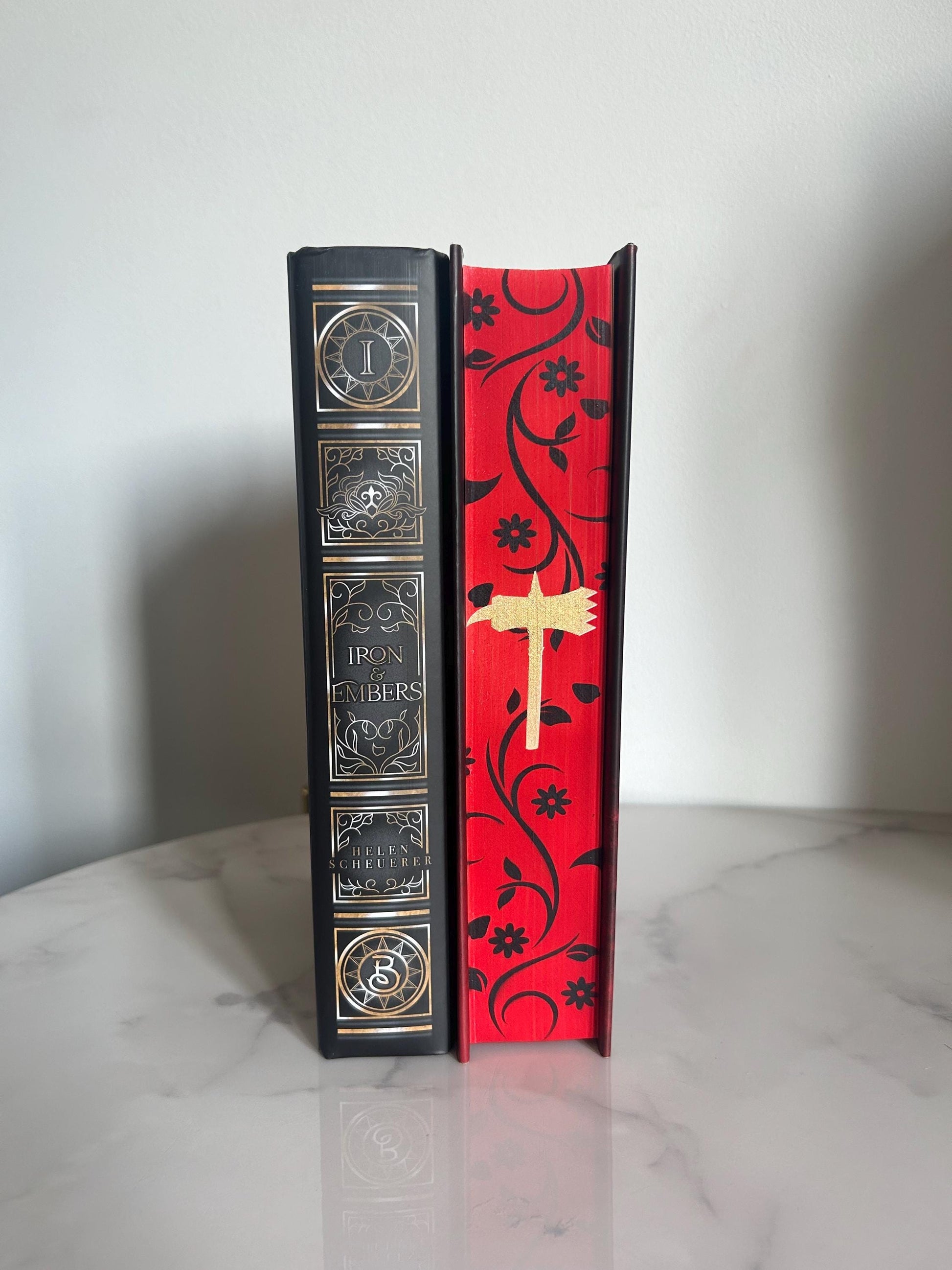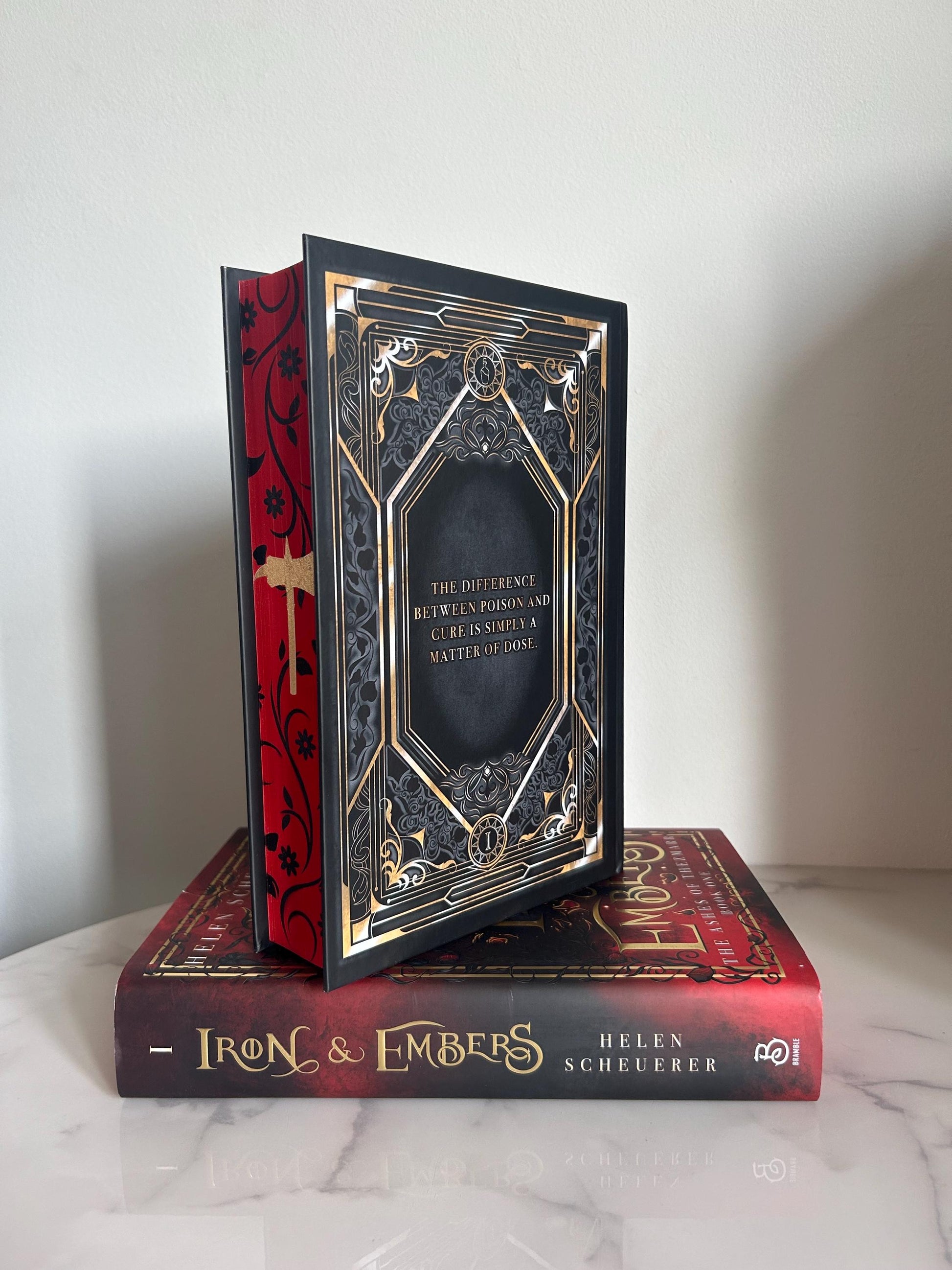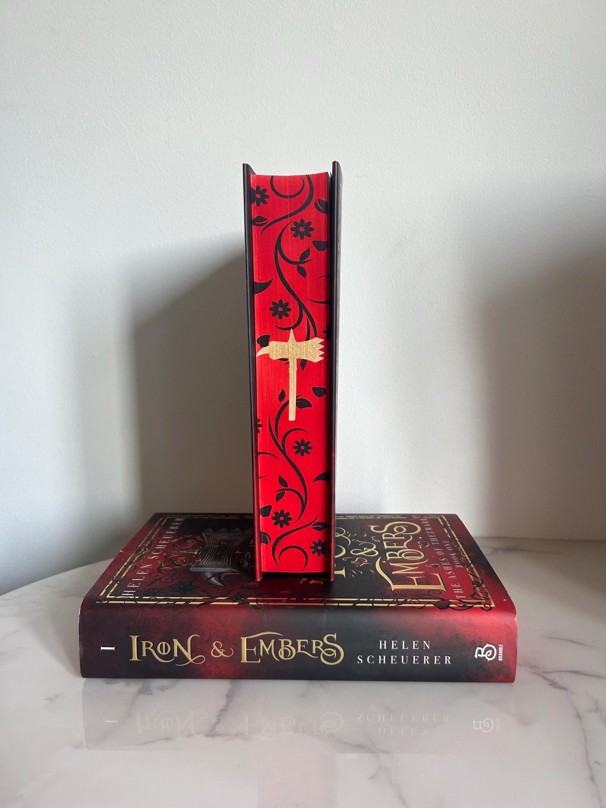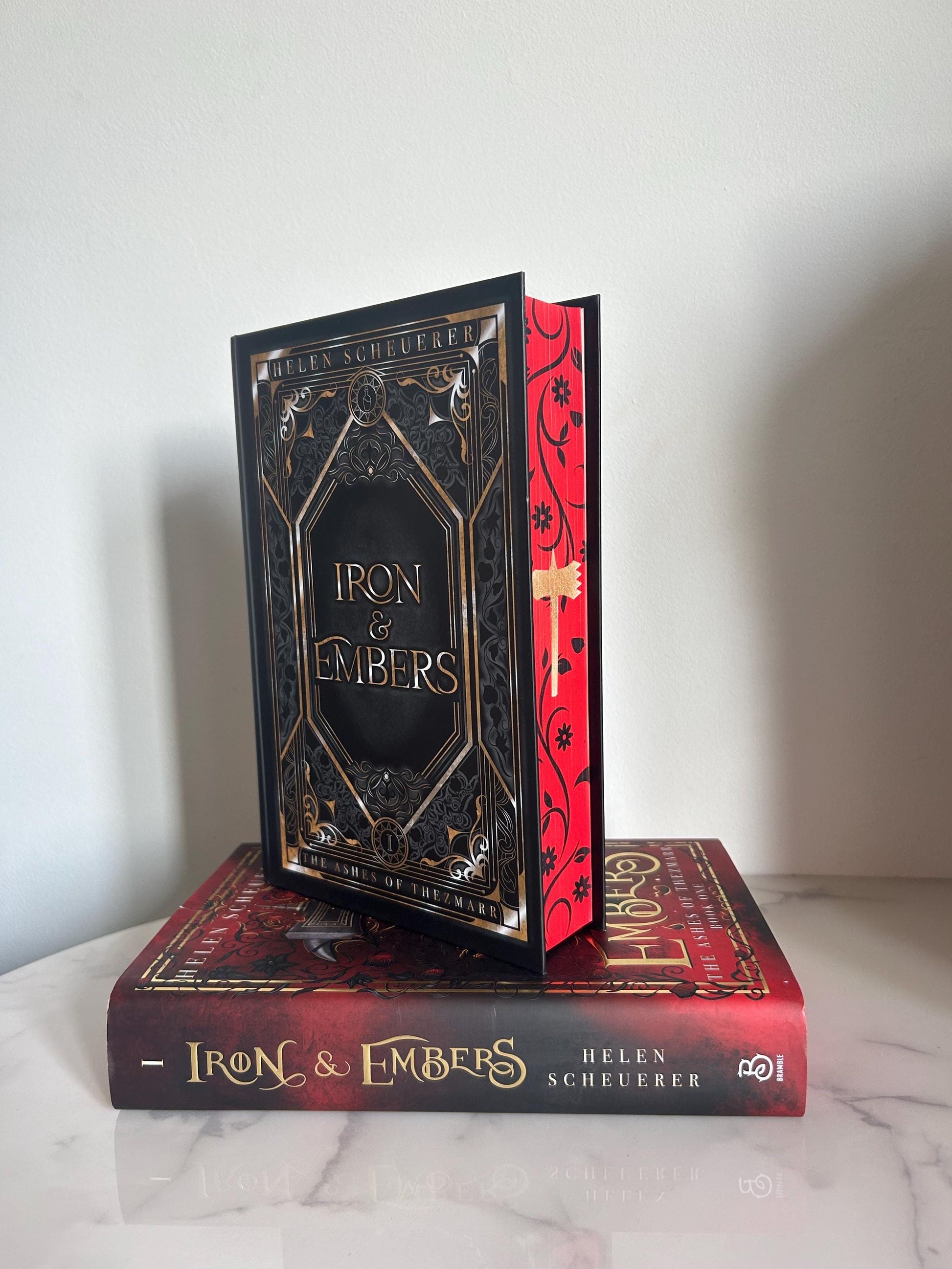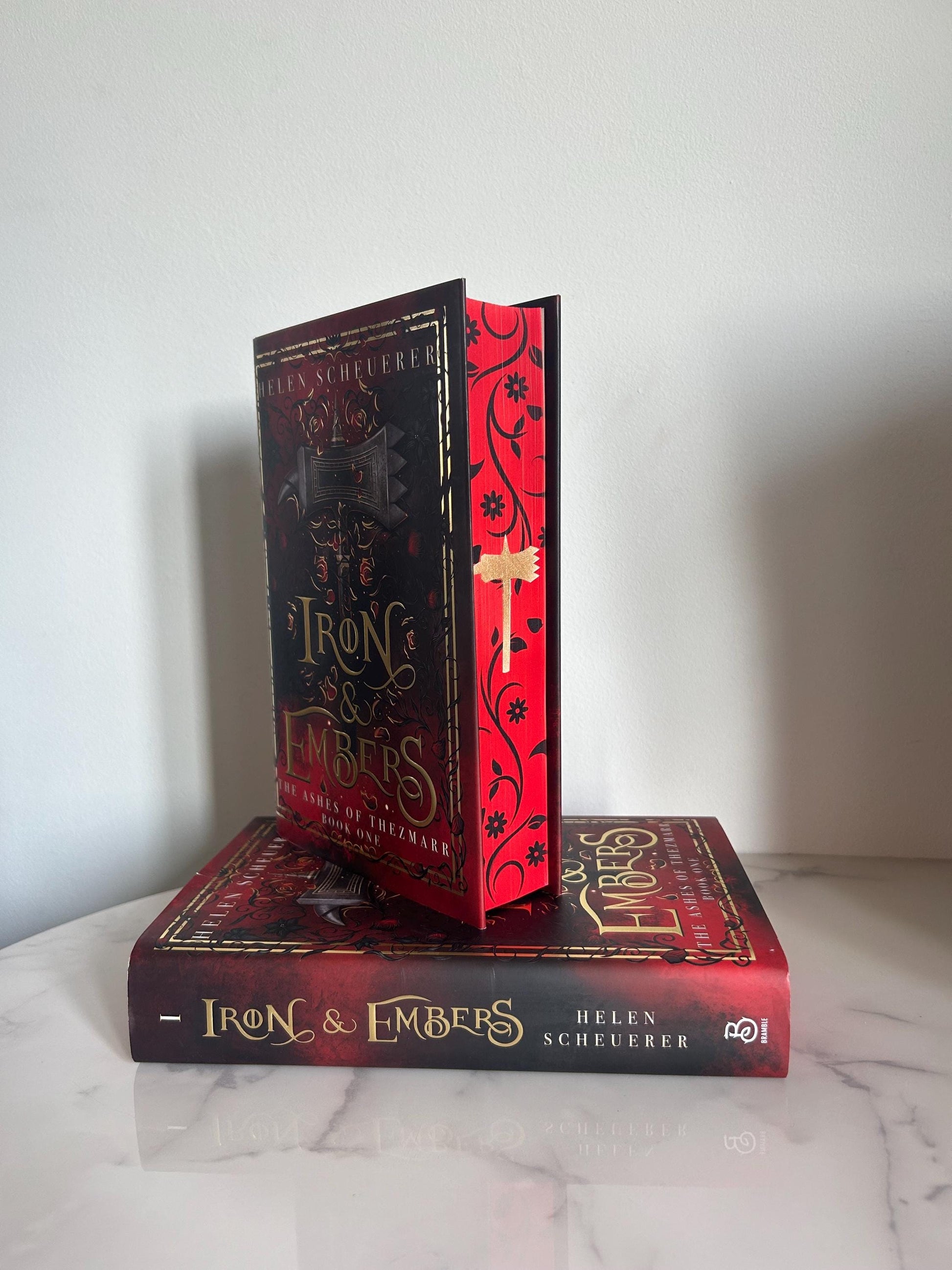 Uk hardback edition of Iron + embers with gorgeous hardback print. These are hand designed and sprayed so minor imperfections may occur.