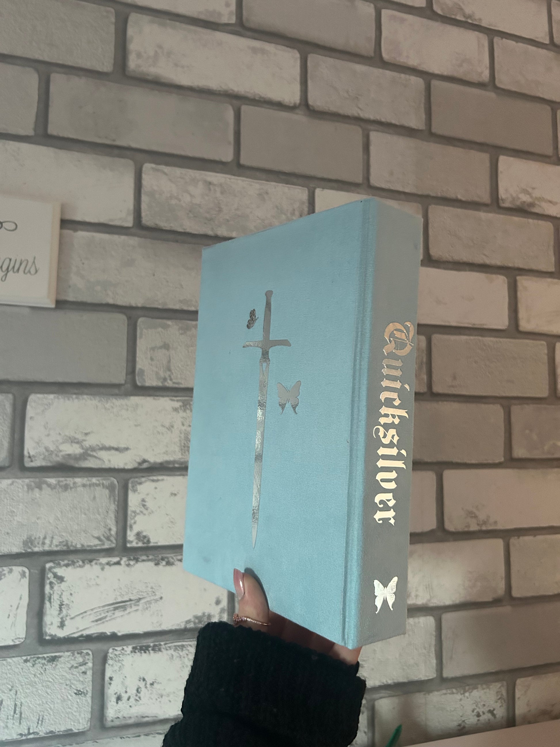 Handcrafted Clothbound Quicksilver Rebind featuring artwork by the insanely talented @gdeliarte (https://www.instagram.com/gdeliarte?igsh=MXF0M3JxbGp3b25rMQ==)