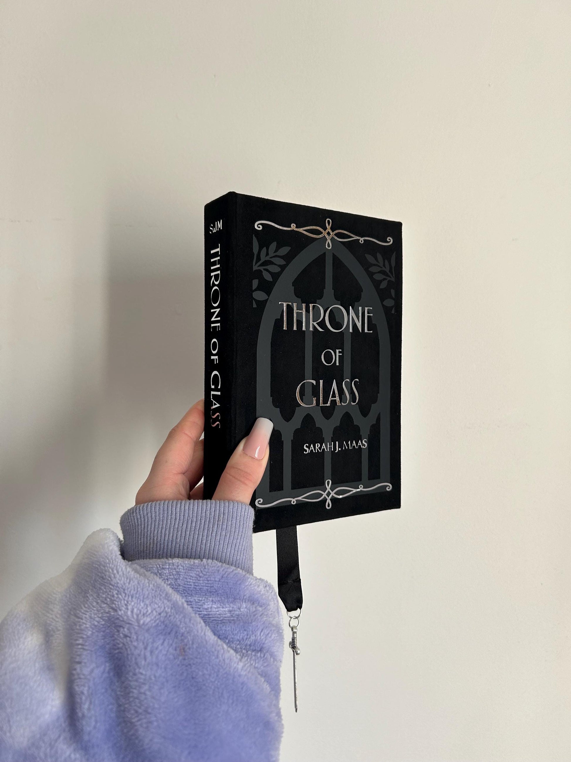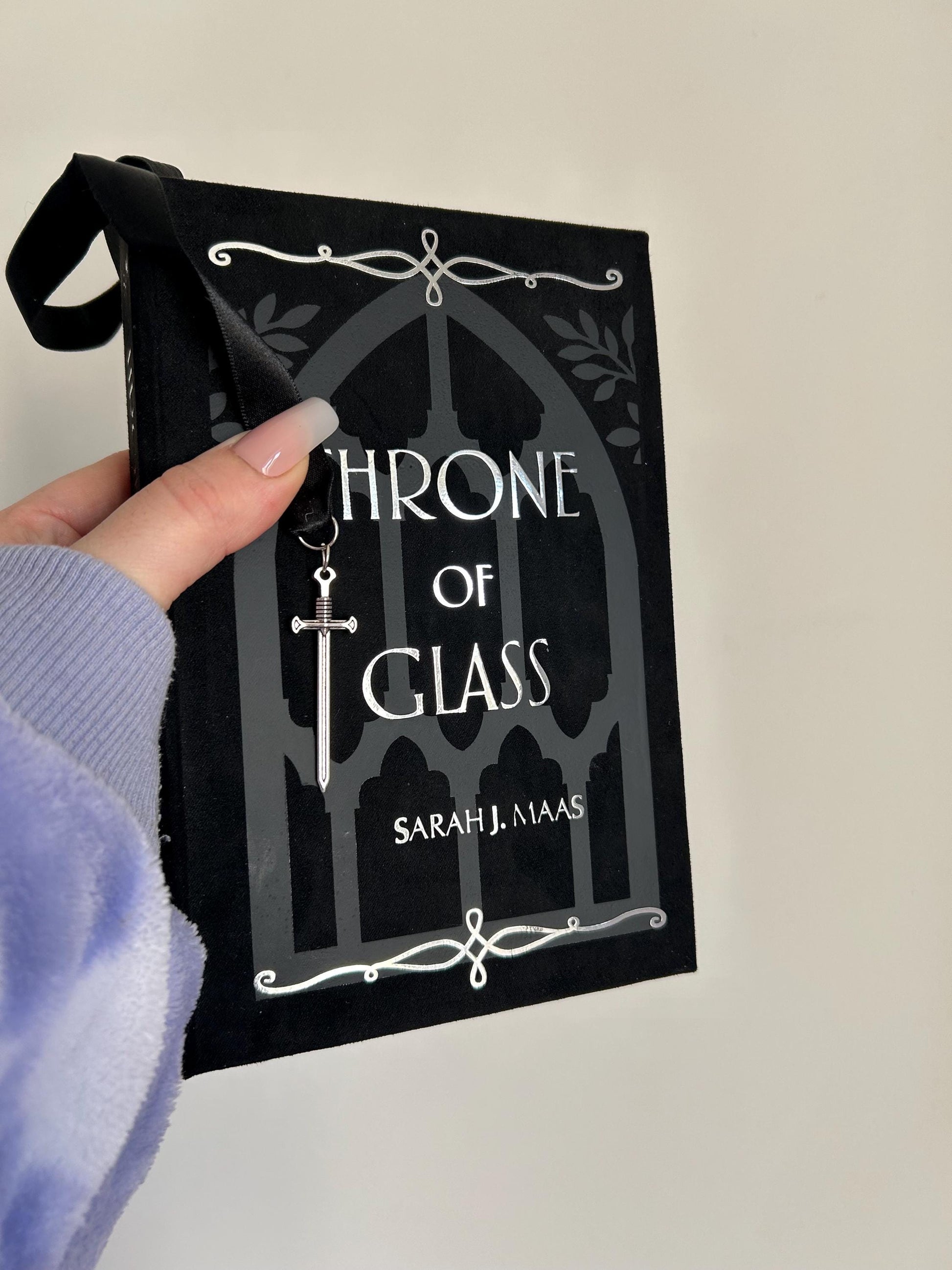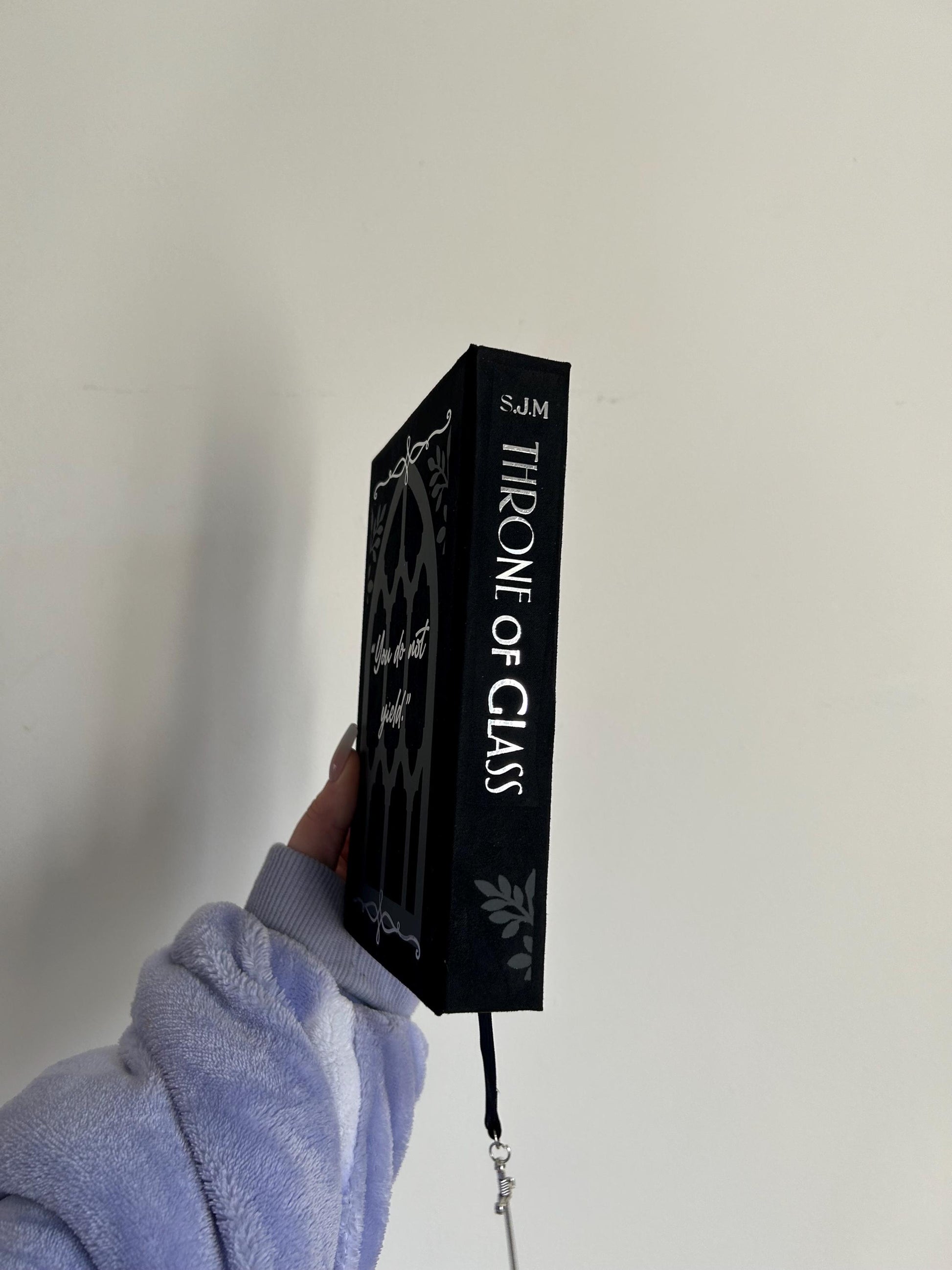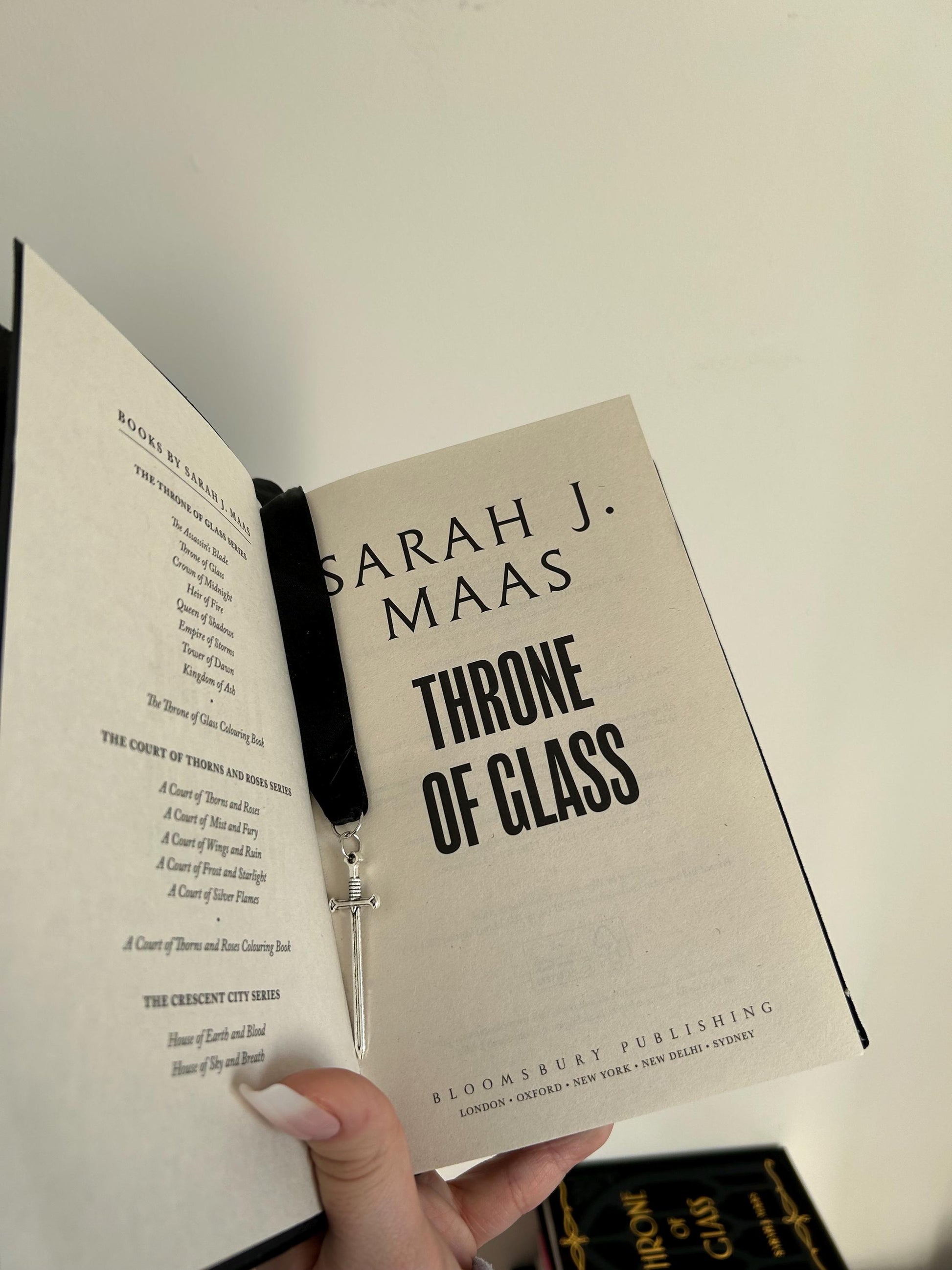 Gorgeous hand made rebound uk paperback edition of Throne of Glass with dagger bookmark.