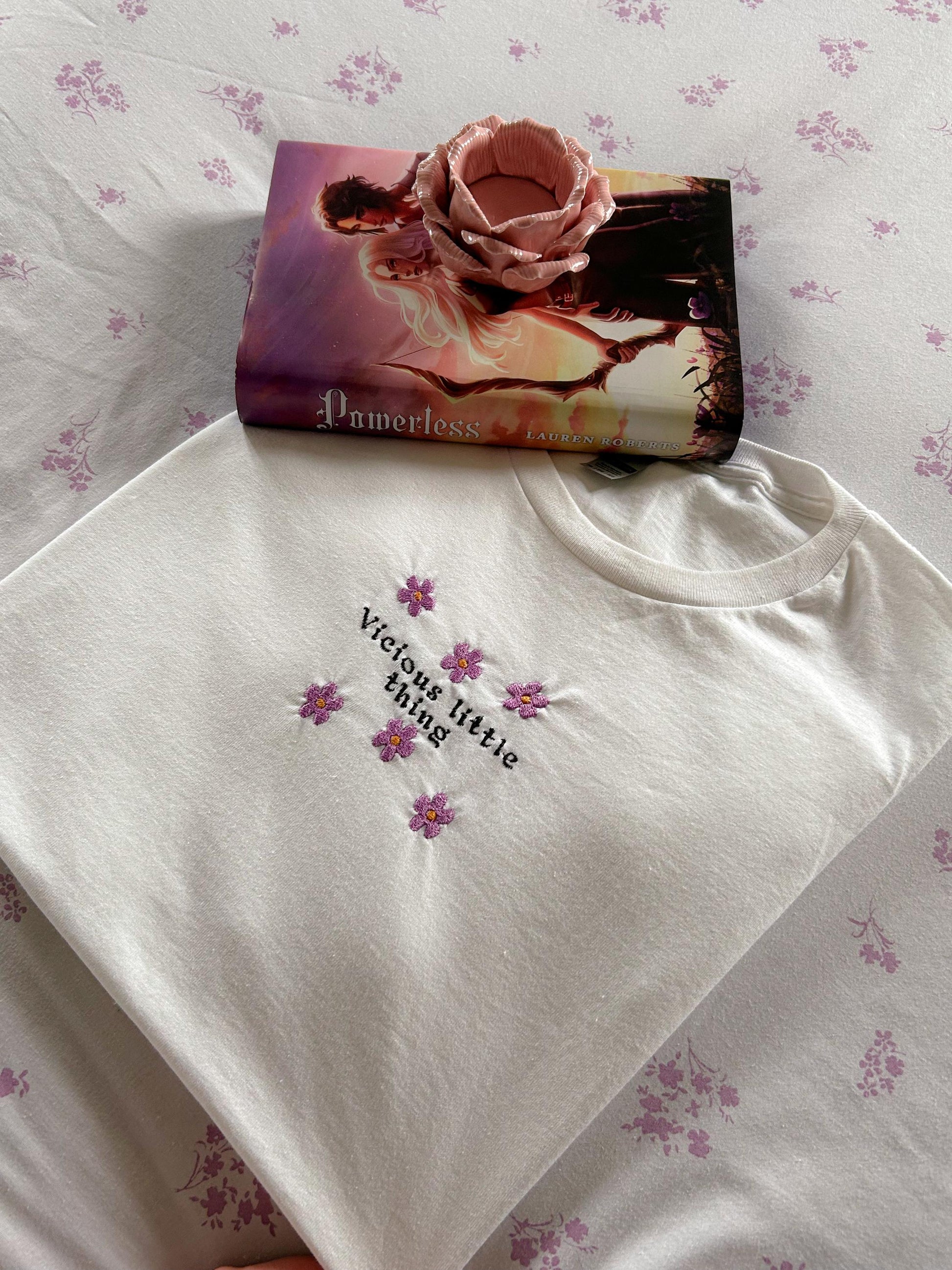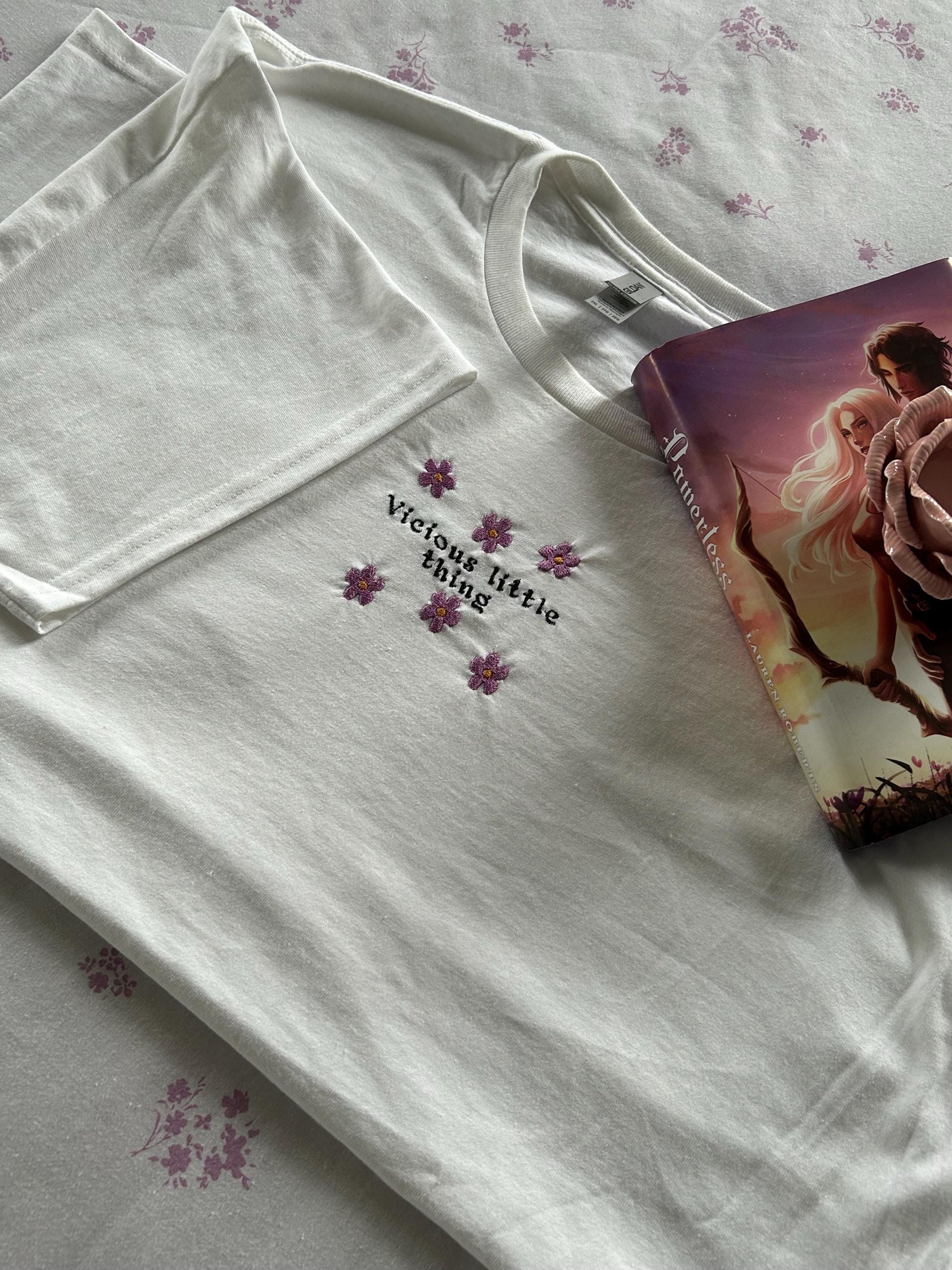 Gorgeous bookish inspired embroidered white T-Shirt
